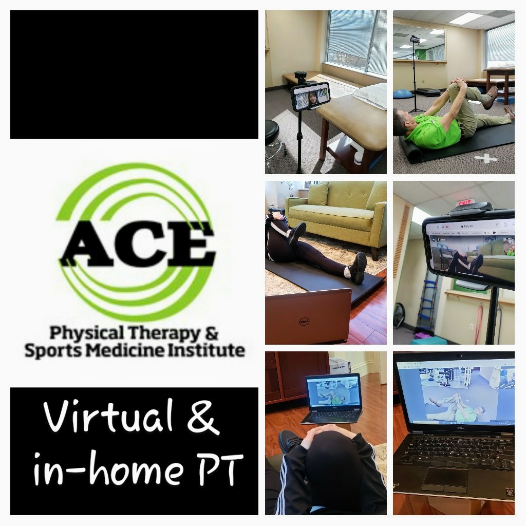 ACE provides this type of service in the form of “live video” or “real-time” treatment sessions. The patient is required to log onto a specific website that is provided by our office. At the time of the scheduled appointment, the Physical Therapist will conduct a session virtually. The therapist will ask the same questions and have the patient perform movements and activities to be able to assess the current status of the patient’s injury. The therapist then guides the patient through a complete treatment session of exercises and functional movements that will help to treat and progress the patient’s rehabilitation program.